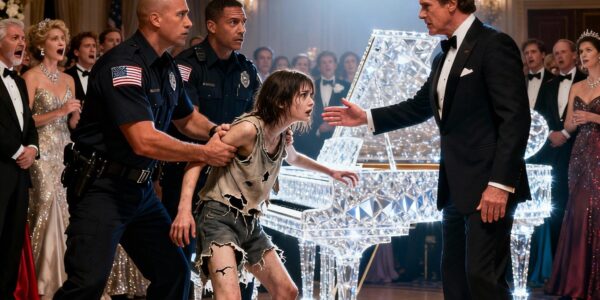 In the middle of the glittering gala, two security guards pulled a frail, homeless girl toward the exit. She twisted in their grip, staring desperately at the shining piano. “Please! Just one song… I’ll trade it for a meal!” The…