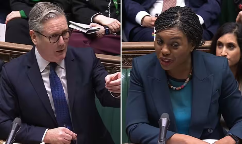 Kemi Badenoch questions Keir Starmer during PMQs in the House of Commons (Image: Parliament TV)