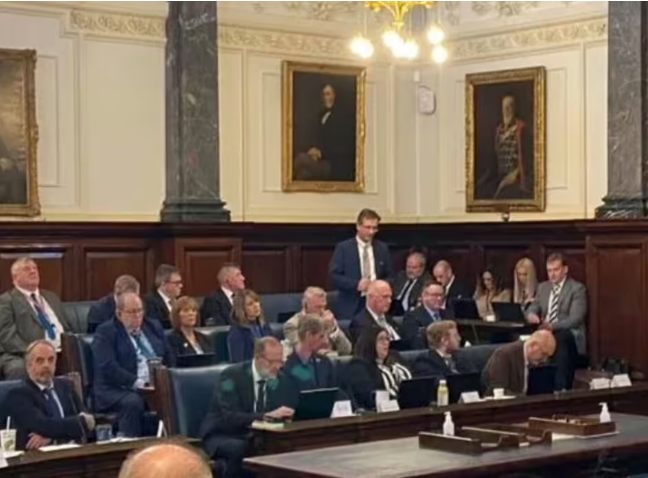 Phil Corrigan, a reporter for the outlet who was at the meeting, said: “I’m covering an eventful full council meeting at Staffordshire County Council.