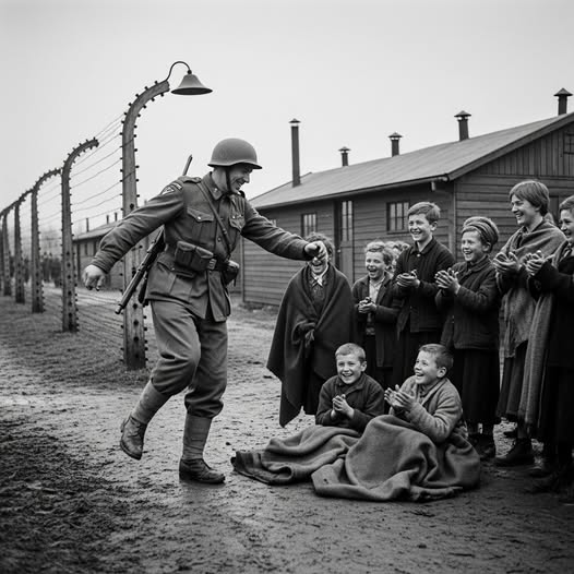 Il existe des images qui, même silencieuses, semblent respirer. Elles traversent le temps comme si elles portaient encore le souffle de ceux qui y apparaissent. Parmi ces fragments d’archives historiques liés à la Seconde Guerre mondiale, l’une d’elles résonne avec une force presque miraculeuse : le moment où, au cœur du camp de concentration de Bergen-Belsen fraîchement libéré, un soldat allié fit rire un groupe d’enfants rescapés pour la première fois depuis des années. Cette scène, que l’on pourrait croire inventée tant elle paraît fragile et improbable, appartient pourtant à l’histoire vraie, à la mémoire douloureuse mais essentielle de l’Europe.