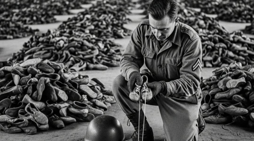 Il y a des images qui pèsent plus lourd que des bibliothèques entières. Celle-ci en fait partie : un soldat, seul, à genoux, dans un hangar silencieux saturé de chaussures. Des milliers. Des montagnes de cuir usé, de semelles déformées, de lacets emmêlés. À Majdanek, en juillet 1944, le temps s’est figé entre les murs du camp libéré. Les pas ont cessé, mais les traces, elles, demeurent. Et dans ce silence étouffant, un homme en uniforme s’accroupit. Entre ses mains, une minuscule paire de souliers d’enfant.