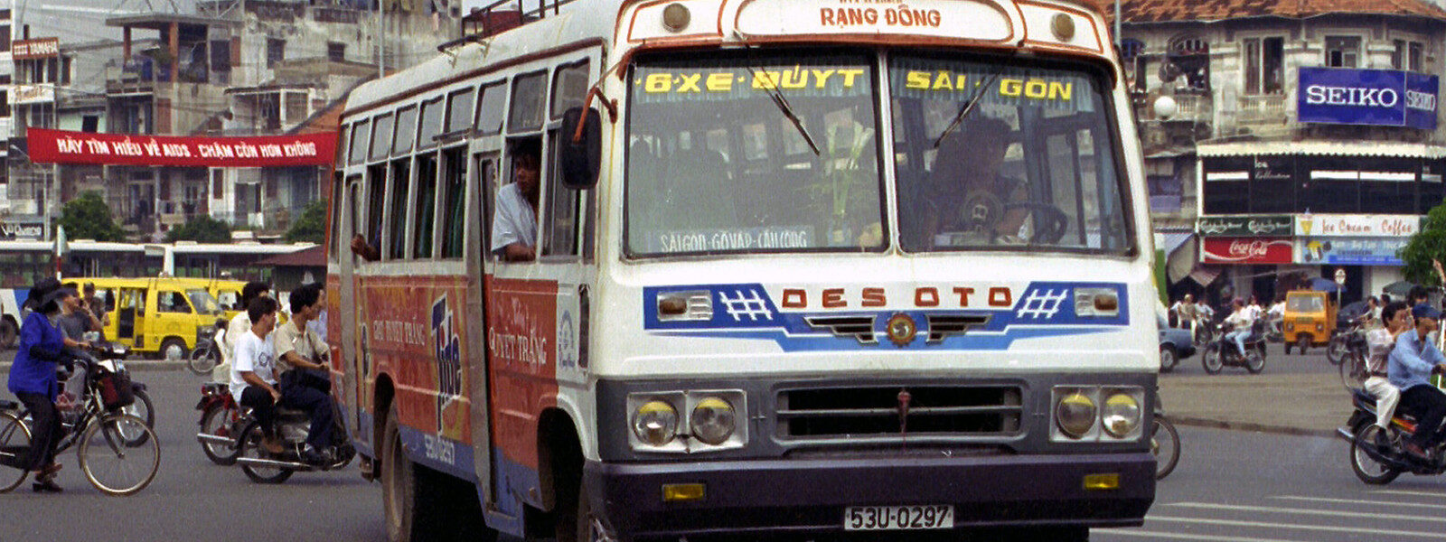 Một chiếc xe không rõ chủng loại, biển số 53N-04-80, chạy tuyến Tân Hóa – Chợ Lớn, 1996.