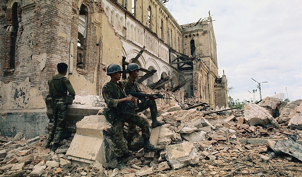 – Trung Tướng Đống : Trưởng có thấy không, trước khi tấn công vào mục tiêu, Tổng Thống Thiệu ra lịnh tuyệt đối không cho phá hủy cổ thành, đến khi vừa vào được trong thành thì bom dội xuống trên đầu như thế nầy thì đánh giặc cái gì đây. Đánh giặc như thế nầy thì tôi không đánh nữa, Trưởng cứ cho ai vào đánh thì đánh đi.